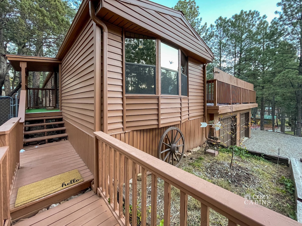 Relájese con toda la familia en Vista Bella, un acogedor refugio de montaña de 1450 pies cuadrados en un acre de terreno. Disfruta de impresionantes vistas a las montañas desde la terraza trasera y casi todas las habitaciones de la casa durante el día mientras te acurrucas a una chimenea eléctrica climatizada o disfruta de un baño en el jacuzzi por la noche. Disfruta de una comida al aire libre en el amplio patio trasero cubierto. Lee toda la información proporcionada en este anuncio antes de decidirte a reservar.