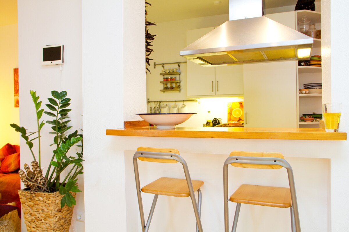 Justo en el corazón del barrio más de moda de Colonia: ¡el Barrio Belga! El departamento está ubicado en la Bismarckstraße, a pocos pasos de la animada Brüsseler Platz. Justo al lado: la tostadora de café Heilandt, excelentes restaurantes, bares y boutiques. Kölsch en el Büdchen por la tarde, los mejores bares de la ciudad por la noche. Rudolfplatz y Friesenplatz están a poca distancia a pie: Colonia está a sus pies. ¡Bienvenido!