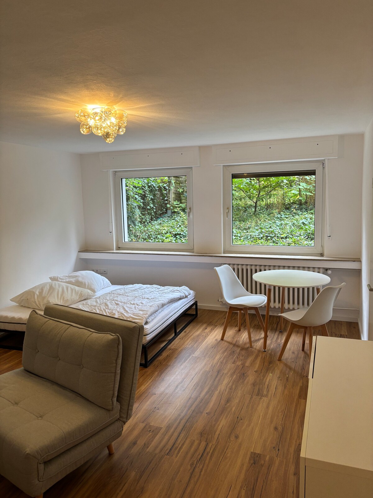 El departamento de 1 habitación está ubicado en la planta baja de una antigua casa multifamiliar renovada en 2016 en la hermosa Colonia Lindenthal, justo antes del Cinturón de Colonia, cerca del Hospital Universitario. A pesar de la ubicación céntrica (autobús al centro de la ciudad y tren a Ehrenfeld a solo un minuto de distancia), es tranquilo en el apartamento, ya que se encuentra en un edificio trasero. El apartamento, que anteriormente formaba parte de una carpintería que fue renovada en un apartamento, impresiona con su encanto de edificio antiguo, en combinación con un mobiliario elegante y de alta calidad.