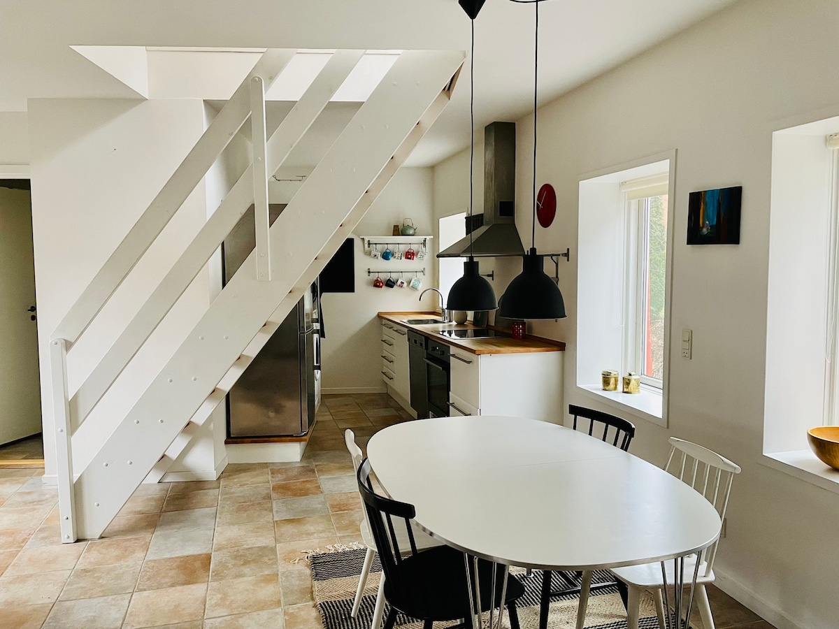 Alojamiento sencillo situado en un pueblo tranquilo con iglesia. Cerca de buenas playas y bosques. Wi-Fi gratuito. Es posible aparcar en el patio y la terraza junto a las escaleras es de uso gratuito. La casa está construida con materiales sólidos y la simplicidad ha sido una prioridad. Ideal para parejas o familias con niños pequeños. La ubicación es excelente en comparación con Aarhus, Copenhague, Lego Land, Ribe.