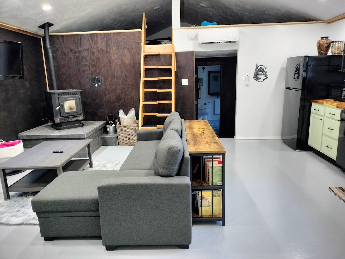 500 pies cuadrados, ubicado en el centro de Albany, a pocas cuadras del distrito histórico del centro de la ciudad y a poca distancia en auto de cualquier otra cosa de la ciudad. A poca distancia a pie de un hermoso sendero fluvial/carril bici. 1 dormitorio espacioso con cama tamaño queen (1 doble plegable bajo petición) 2 televisores inteligentes y WiFi, cocina pequeña (ten en cuenta que esto no es una cocina completa). Esta es nuestra casa trasera y es posible que nos veas, ¡pero te daremos toda la privacidad que desees! Tenemos 2 perros a los que les gusta deambular. Estamos cerca del tren, lo escucharás pasar.