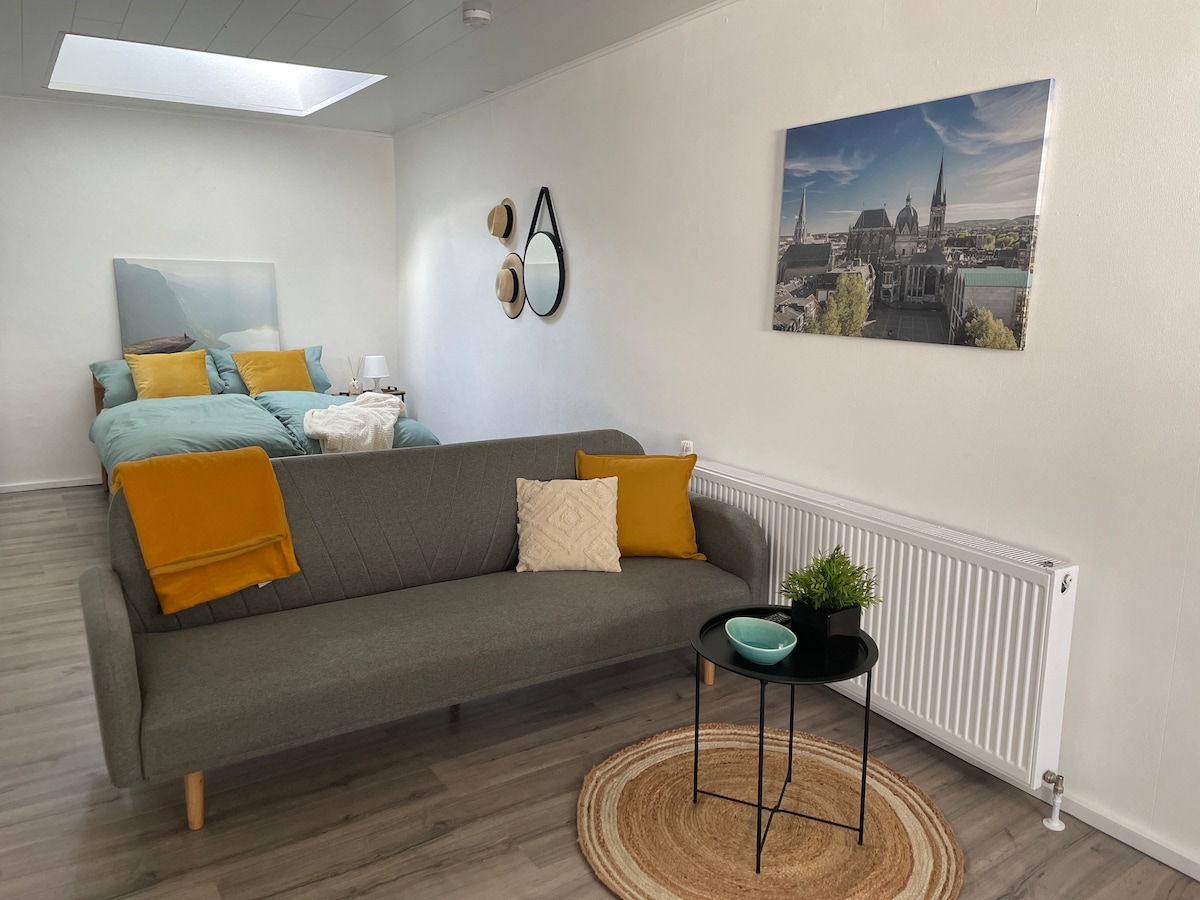 El apartamento pequeño y muy limpio está en el 4º piso de una casa urbana de 100 años en una zona norte muy tranquila y verde de Aquisgrán. Aparcamiento gratuito, mantas y toallas, cocina completa, bicicleta para invitados, todo lo necesario para una estancia perfecta en Ac