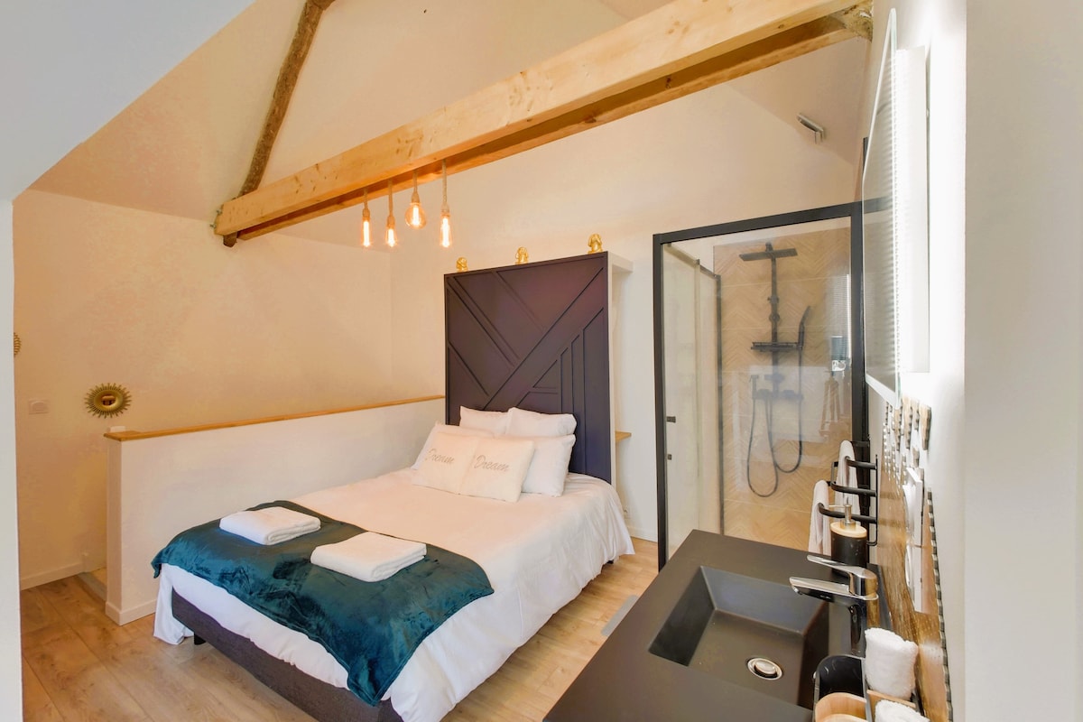 Bienvenido a su casa "Entre Parenthèse", un lugar cálido y tranquilo situado a menos de 700 metros del mar, a 500 metros de las tiendas y a 20 minutos de Caen. Casa de piedra restaurada que incluye una cocina amueblada y equipada, un aseo independiente y una zona de spa que incluye sala de estar, TV y Jacuzzi que puede disfrutar de forma ilimitada. Arriba hay una suite que contiene una cama Queen Size y un baño Desayuno incluido la primera noche