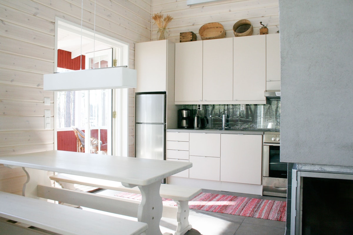 Villa Myyry es una villa acogedora y bien equipada a orillas del río Pielisjoki, en el pueblo de Paihola, en Kontiolahti. La villa tiene 77 m² en la planta baja y además hay un gran altillo. La ubicación es en un entorno rural tranquilo. La carretera llega hasta la villa y hay mucho espacio para aparcar en el patio. Apto para personas alérgicos, no se admiten mascotas. Se puede acceder a la ruta ciclista directamente desde el patio o al hielo de Pielisjoki para hacer senderismo con raquetas de nieve. La estación de esquí Kontiolahti Biathlon está a unos 10 km. El arrendador vive en la casa de al lado.