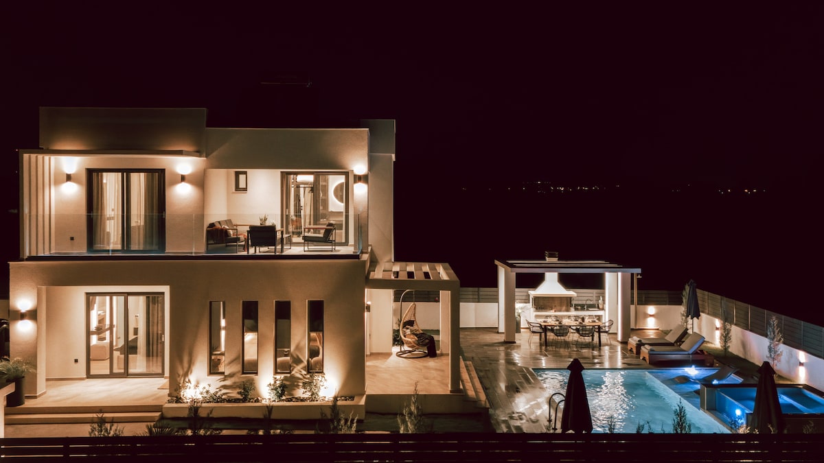 Esta impresionante propiedad se encuentra en Akrotiri, en la cima de una colina, disfrutando de claras vistas panorámicas tanto hacia el puerto como hacia la ciudad de Zante. Está convenientemente situado a solo 4 km del puerto y de la plaza principal del casco antiguo. Los muebles BoConcept en la sala de estar, el dormitorio con los sistemas naturales de sueño y la ropa de cama de COCO-MAT, así como el suave toque de la ropa de cama Guy Laroche de alta calidad completan la sensación de una estancia de lujo.