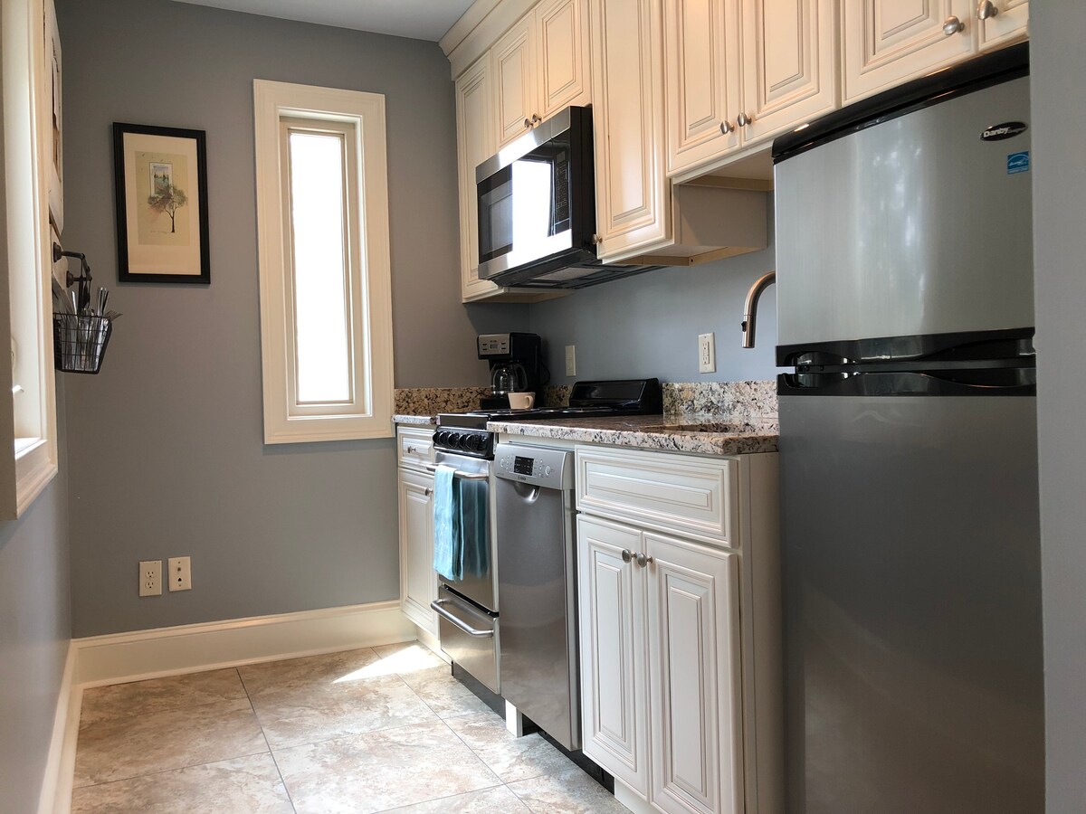 Suite de invitados de 1 dormitorio tamaño king en un moderno dúplex de estilo granja. Esta unidad tiene una entrada privada en la parte trasera y hay otra unidad adyacente a esta que entra por la parte delantera. Sala de estar con techos altos abovedados, cocina pequeña con zona de bar, baño privado con ducha a ras del suelo. Estacionamiento privado enfrente de la unidad. Se proporcionan sábanas y suministros básicos. Consulta otros detalles del anuncio para obtener información específica sobre lo que se proporciona.