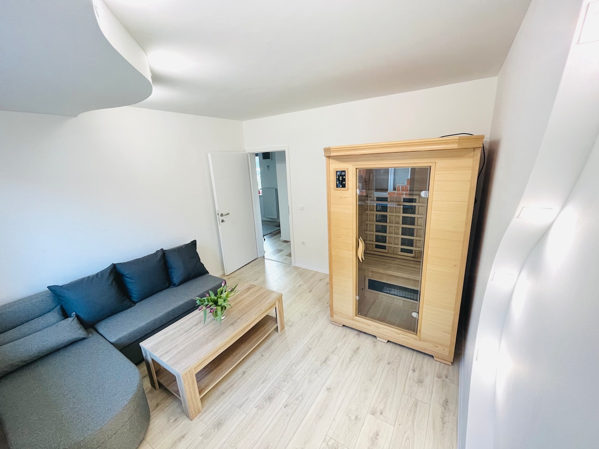Wellness House Izabela: sauna, bañera de hidromasaje y madera