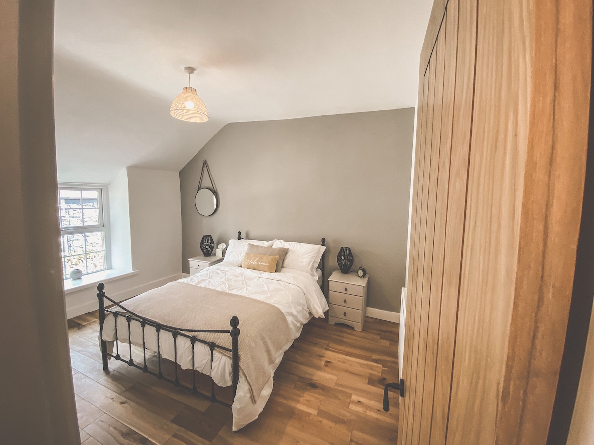 Set within Eryri National Park and only a short drive from the seaside town of Llanfairfechan, The Woolstore is a unique two-bedroom, dog-friendly retreat perfect for unhurried stays. Original beams and stonework sit alongside underfloor heating, a cosy wood-burner and spa-style shower, giving the cottage a calm balance of character and modern comfort. Stunning views stretch across the hills towards the North Wales coast - a luxurious and peaceful setting to unwind and reconnect with nature.