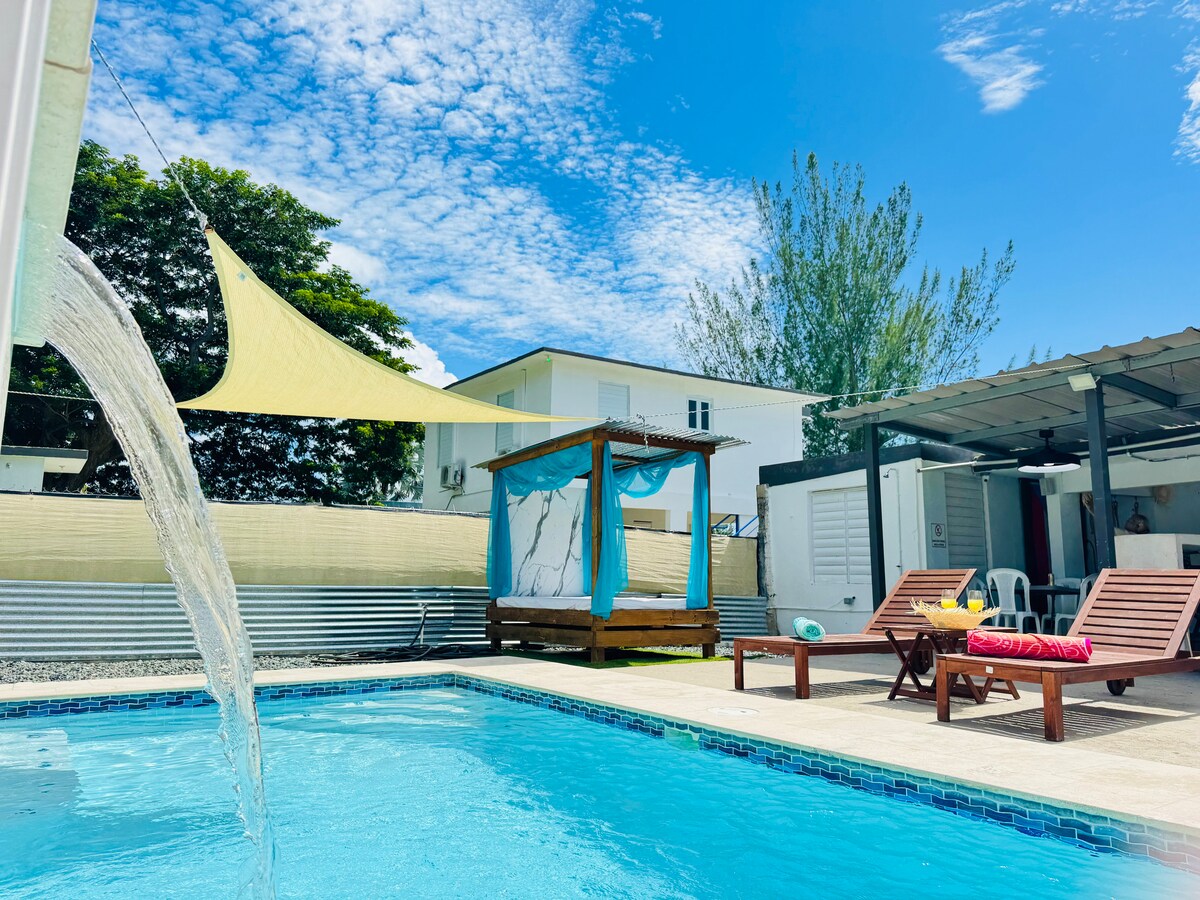 Piscina privada con cascada, BBQ a minutos de las playas de Cabo Rojo. Escapate a Cabo Rojo y disfruta de una casa moderna con 3 habitacione, 2 baños completos y un medio baño con ducha junto a la piscina. Relajate en la piscina con cascada, comparte momentos unicos en la terraza con BBQ y cocina tus platos favoritos. Descansa con aire acondicionado en cada habitación. A solo minutos de las mejores playas, restaurantes y atracciones. Perfecta para familias y grupos. Pripedad con placas solares.