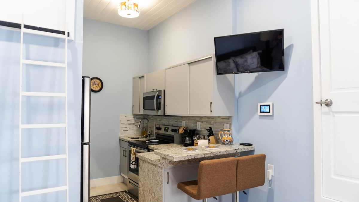 Este estudio está diseñado para la comodidad y la simplicidad. Ofrece un espacio limpio, luminoso y totalmente equipado con una cama cómoda, una cocina completa, un baño moderno, televisión inteligente, wifi rápido y aparcamiento gratuito. Zona céntrica, fácil acceso a los mejores lugares de Miami. Situado en Little Havana, estás a 10 minutos a pie de la emblemática Calle 8, rodeado de restaurantes, cafeterías y bares, a solo 7 minutos en coche de Brickell. Perfecto para viajeros solos o parejas que quieren una base acogedora y fácil en uno de los barrios más vibrantes de la ciudad.