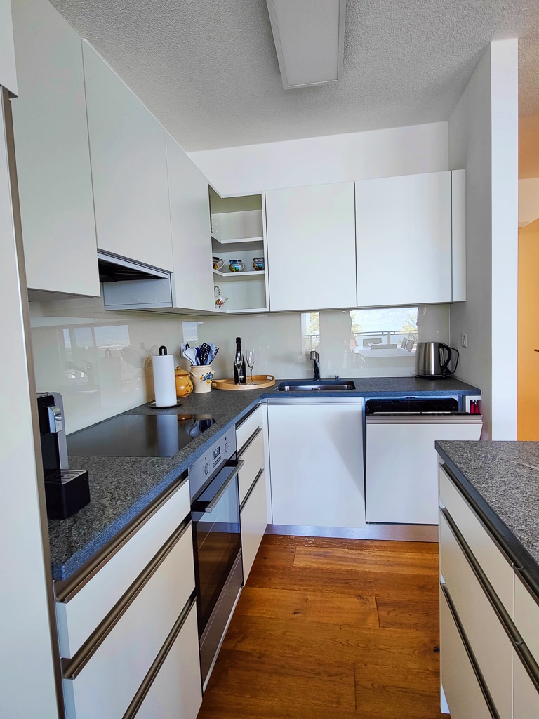 El apartamento cumple todos los deseos. Está ubicado en una zona tranquila de Minusio, en las afueras de Locarno, está amueblado de forma funcional y tiene 2 dormitorios (1 cama doble y 1 litera) y una espaciosa sala de estar de planta abierta con una gran terraza. También hay una cocina bien equipada y un baño con ducha. Lo más destacado es la vista sobre el lago Mayor y las montañas. El edificio cuenta con piscina cubierta y plaza de aparcamiento gratuita.