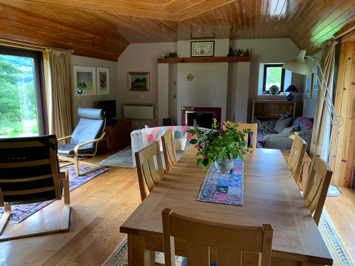 The Owl House es un refugio acogedor, a cinco minutos del histórico Fortingall. Esta antigua dependencia ha sido cuidadosamente renovada y ofrece hermosas vistas sobre el valle. Por la noche, añade algunos troncos a la estufa de leña, siéntate y disfruta escuchando el ulular de los búhos. Glen Lyon, Ben Lawers, Schiehallion, Aberfeldy, Drummond Hill y Loch Tay están a tiro de piedra. Se admiten perros con buen comportamiento (ten en cuenta que no aceptamos gatos). Número de licencia escocesa para alquileres de corta duración: PK12506F