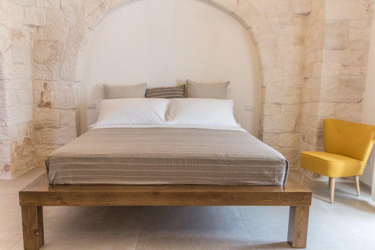 IL TRULLO TUO con jardín, situado en el barrio histórico de Aia Piccola, reformado en 2013, puede alojar hasta 4 personas. Una estancia inolvidable, una experiencia exclusiva que te hace retroceder en el tiempo entre la tradición y la atención al detalle. Es posible llegar en coche frente al trullo para hacer una parada de unos minutos y dejar el equipaje. Aparcamiento en Via Indipendenza por 6 euros al día, o 2 euros por hora frente al «trullo» o cerca de la estación de tren.