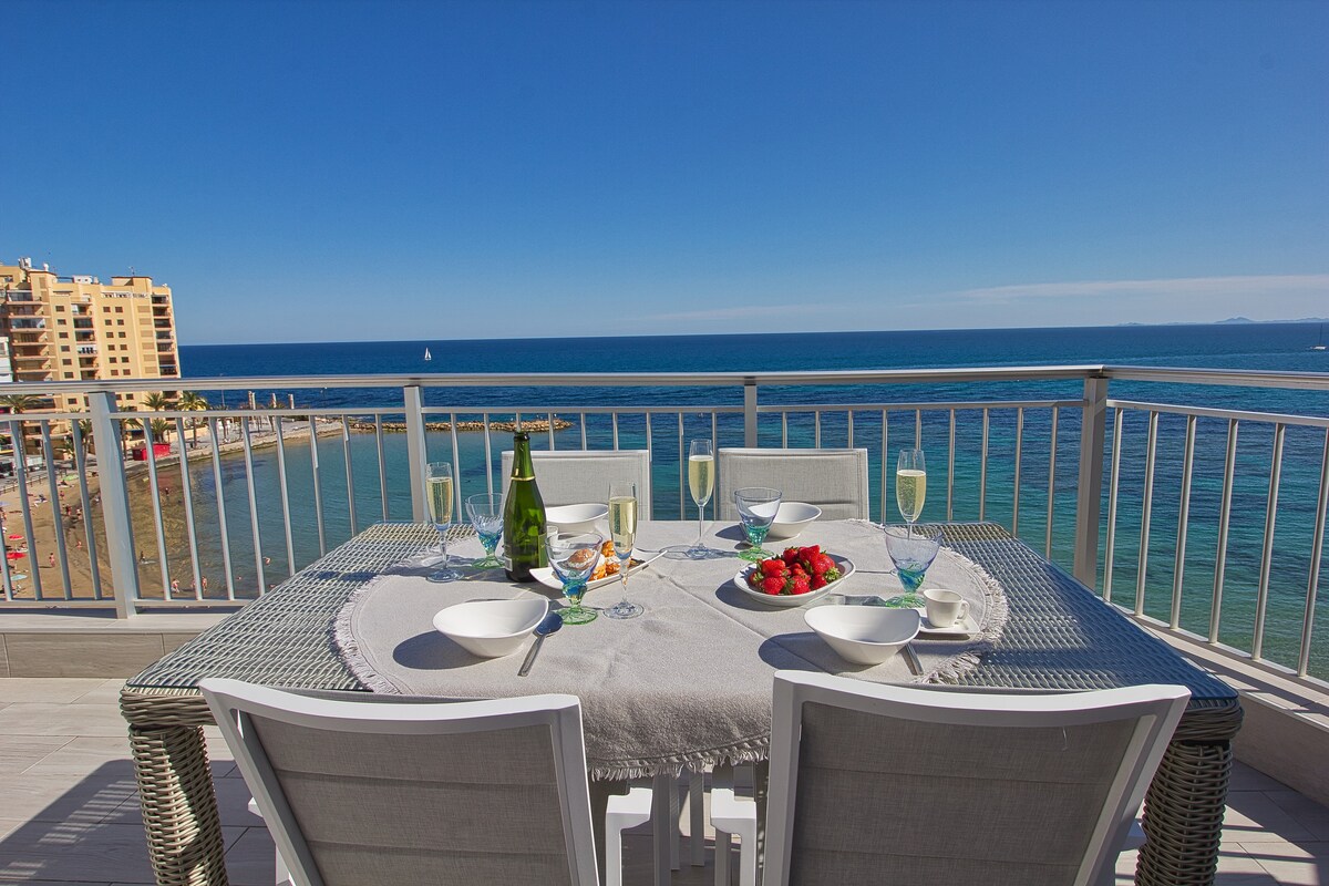 ¡Le damos la bienvenida a nuestro exclusivo penthouse frente al mar! Pase vacaciones inolvidables en este fantástico departamento con una ubicación privilegiada, en primera fila, con una vista maravillosa al mar y al paseo marítimo. Disfrute de horas de relajación en el balcón con un panorama espectacular, especialmente al atardecer. Este penthouse, decorado con mucho estilo, es el refugio perfecto para quienes desean disfrutar de la combinación de comodidad, vistas y ambiente vacacional.