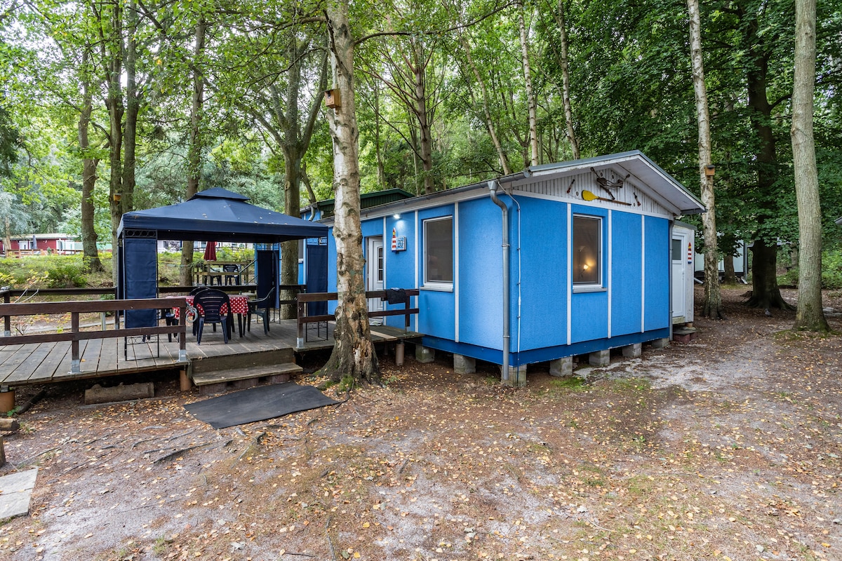A través de la terraza se accede al pabellón. En el interior hay una sala de estar con una cocina americana. También hay una placa de inducción de 4 fuegos, horno y lavavajillas, así como hervidor de agua, cafetera y microondas. El sofá tiene una función de dormir y la Smart TV de 49 ". Desde el dormitorio independiente se accede al baño con ducha y WC. La cama con somier es de 1,80 m de ancho.