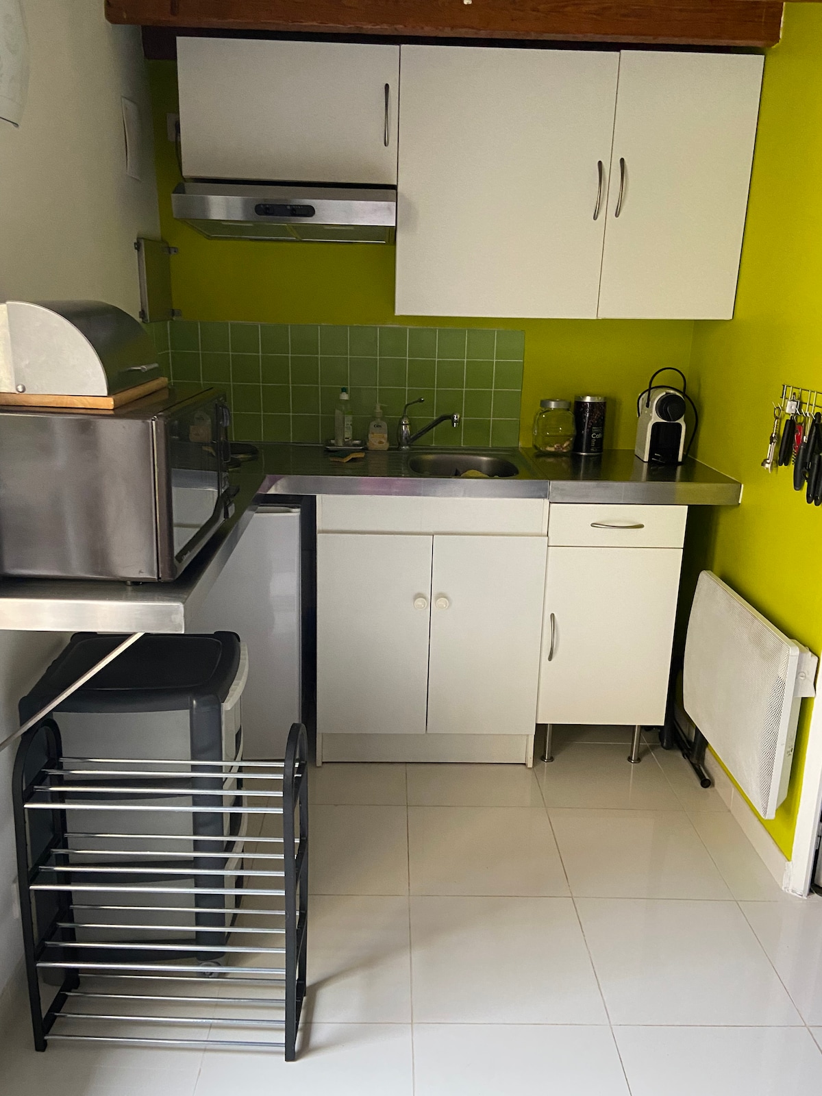 estudio independiente: una habitación principal con sofá cama convertible y una cama para 1 persona. TV, fibra gratuita. Lavadora. Cuarto de baño con ducha y WC Aire acondicionado reversible. Cocina equipada (Senseo, horno, placa eléctrica, lavavajillas, microondas) Pequeño porche compartido, mesa, sillas y parrilla disponibles. Patio cerrado donde aparcar el coche Lugar tranquilo, cerca de las tiendas (farmacia, supermercado...) a 300 metros La Loira en bicicleta (a 1000 m), CNPE de Belleville a 10 minutos y CNPE de Dampierre en burly a 35 minutos