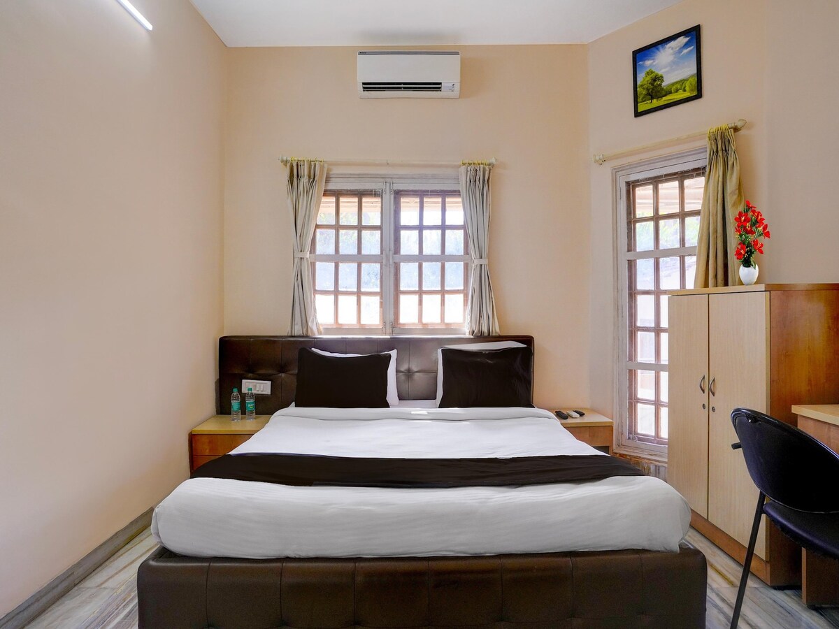 Relax in a quiet, clean private room located inside a pure vegetarian resort property in Lonavala. Ideal for couples, families, and guests looking for a calm getaway away from city noise. Enjoy fresh air from your private balcony, a comfortable stay, and a peaceful environment surrounded by greenery.