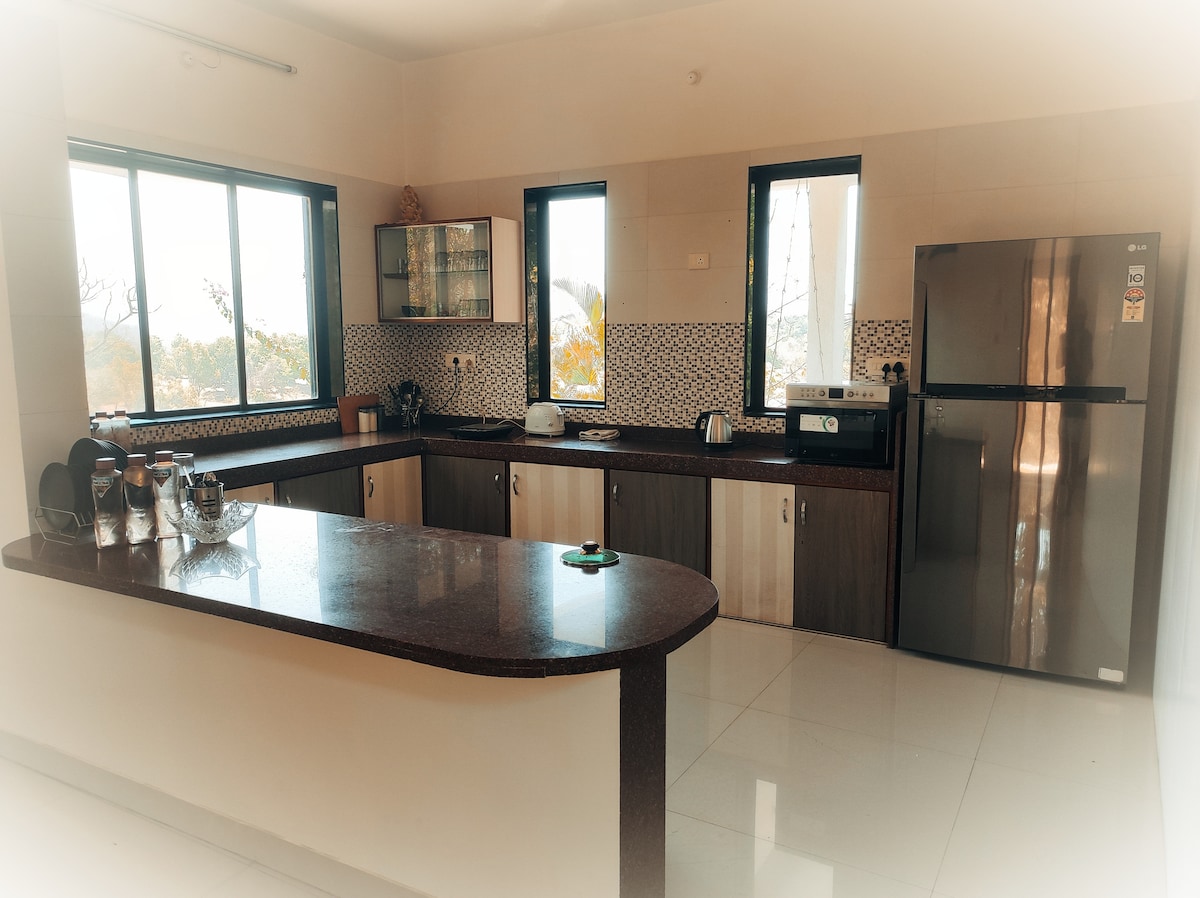 La villa 3BHk con licencia MTDC recientemente renovada tiene su propia piscina privada con ducha de lluvia, jardín ajardinado de 2000 pies cuadrados, además del porche delantero de 500 pies cuadrados y un comedor al aire libre junto a la piscina. El espacio al aire libre es amplio para disfrutar de la barbacoa y la cena mientras te sumerges en la piscina. La cocina está equipada con electrodomésticos y vajilla que te permiten cocinar tu propia comida u organizar una a través de nuestros cocineros de guardia. Se configuraron 3 dormitorios, 5 baños , pasillo y comedor con TV y sistemas de música.