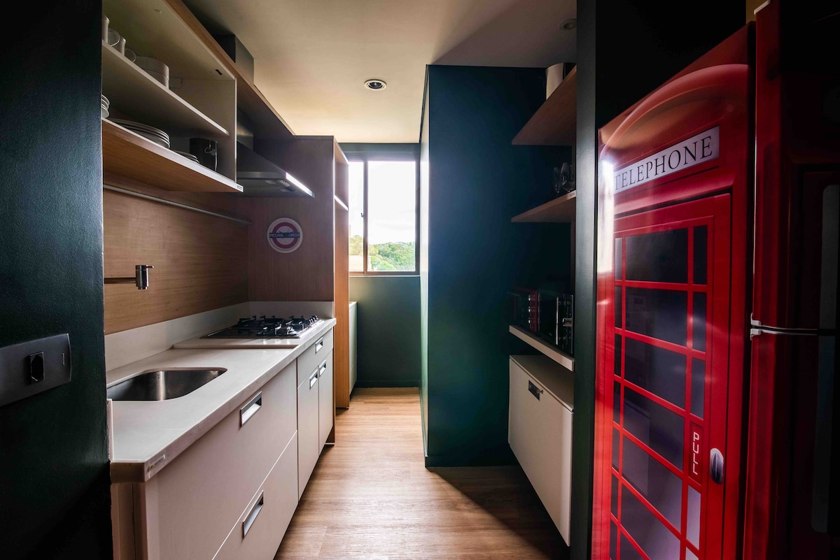 FLAT TIPO LOFT Espacio completo con 43 m2, el doble que los hoteles, con estacionamiento gratuito. Piso de 5 estrellas dentro de un hotel de 4 estrellas, con uso gratuito de piscina, sauna, gimnasio, sala de juegos, recepción 24 horas, sala de espera y servicios de pago como desayuno, restaurante y servicio de habitaciones, todo con seguridad. A 400 metros del centro, cerca de supermercados, farmacias, teatro, restaurantes. Consultar en las aplicaciones la disponibilidad de los flats 702, 901, 902, 1002 y 1003. Temática de Londres. Todo nuevo.