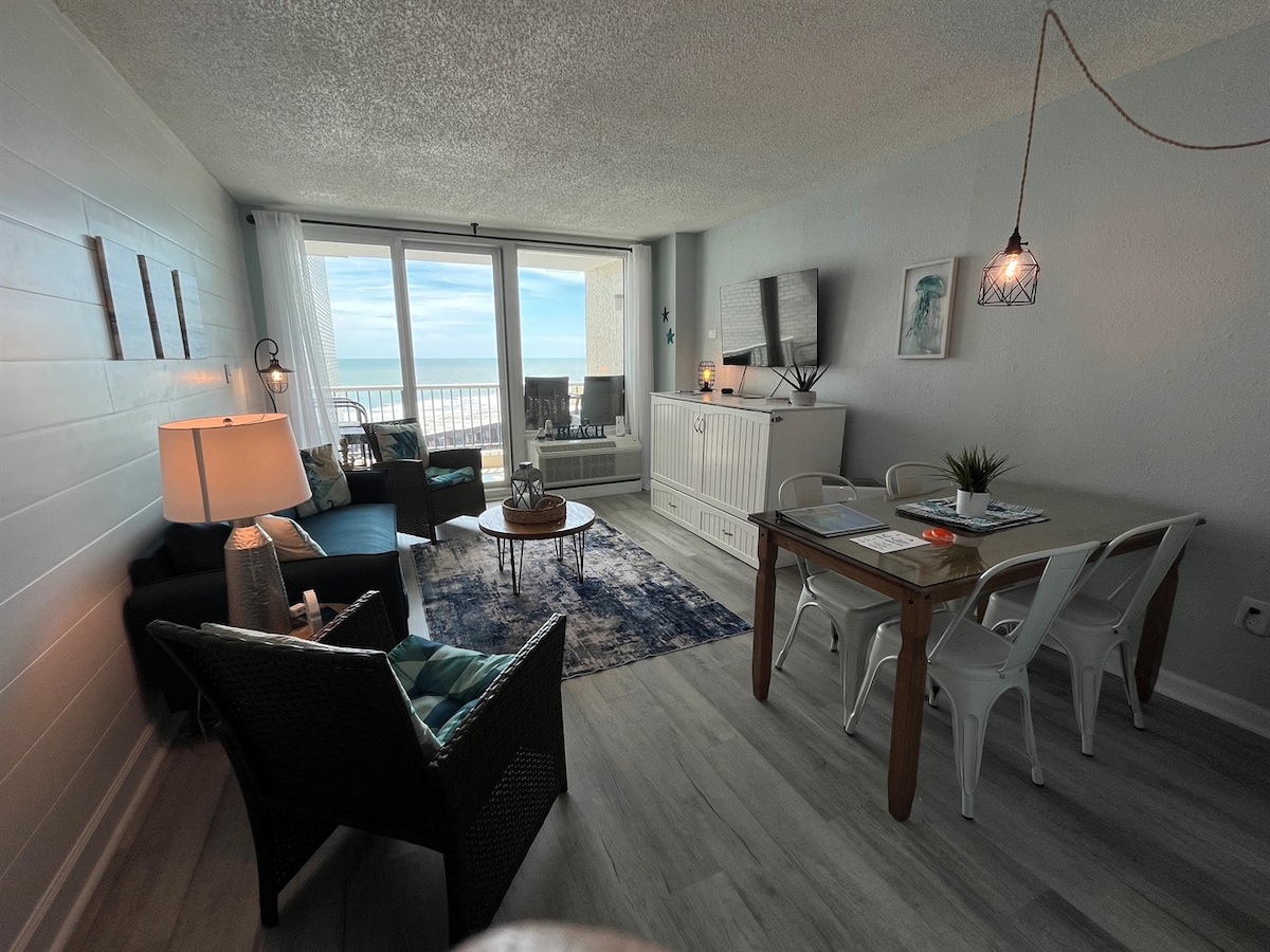 A bright, modern oceanfront retreat where everything feels simple and comfortable. Enjoy open views, a clean design, and an easygoing space made for slowing down by the sea. Top 5% rated in Myrtle Beach 🌴 Oceanfront Luxury — Seawatch Resort 1003 North Tower • 🌊 Floor-to-ceiling ocean views that make the beach feel front and center • 🛋 Bright, modern living space designed to feel open, simple, and comfortable • 🛏 Private bedroom with a comfortable king bed for restful nights • 🍳 Fully equ