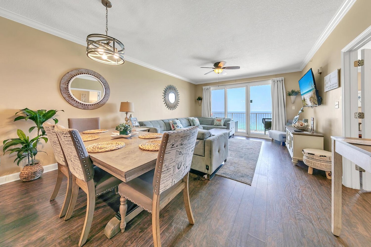 Lujo en Long Beach Resort PCB ✅TARIFA DEL CENTRO TURÍSTICO INCLUIDA ❗️ Elegante ático recién amueblado con Techos de 16 pies ✅Debes tener 25 años para reservar Penthouse 1-1401 Recién remodelado ✅3 suites principales Frente al mar, a cero pasos de la playa, Características de la vivienda 3 BR 3 BA Dormitorio 1: 2 camas de tamaño completo con cocina pequeña y balcón privado. Dormitorio 2: 2 camas tamaño queen y puerta de acceso al patio Dormitorio 3: 1 cama tamaño king con acceso al balcón