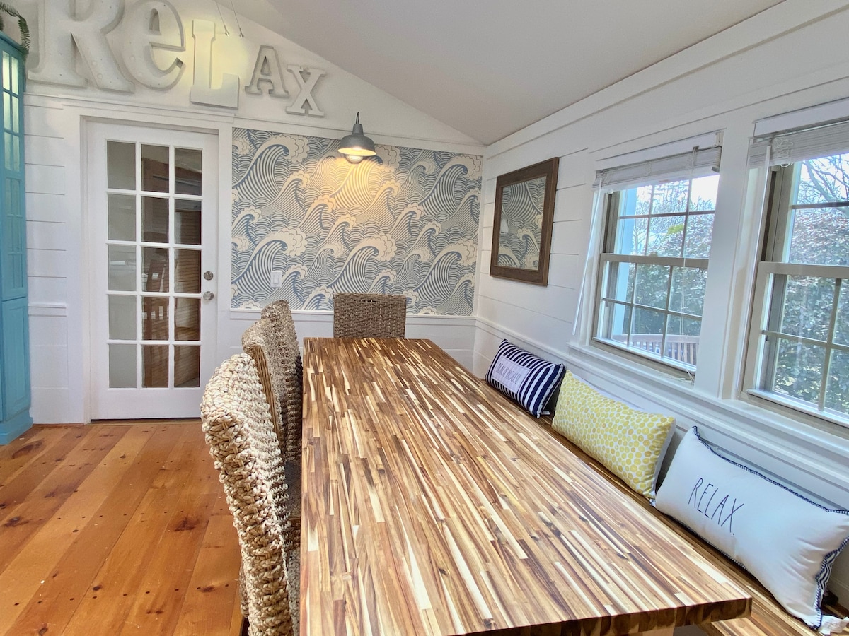 ¡Tu escapada perfecta! ¡A pocos pasos de la playa y del tranvía! Esta adorable casa de campo superlimpia de 2 dormitorios y 1 baño (capacidad para 7 personas) se encuentra en una calle privada sin salida a poca distancia a pie de Footbridge Beach (0,25 millas) y restaurantes locales, y a 1 milla del centro de Ogunquit. Te encantará el encanto de la casa de campo, con su ambiente fresco y acogedor. ¡Cada centímetro de este hermoso espacio ha sido cuidadosamente amueblado para garantizar una experiencia verdaderamente memorable por dentro y por fuera!