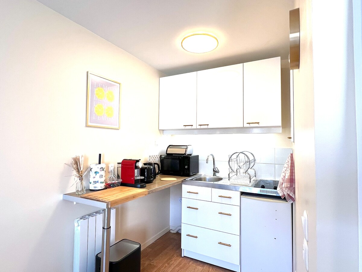 Ven a alojarte en mi apartamento de 40 m2 (430 pies cuadrados) en el centro de la ciudad, con vistas a un patio tranquilo. Espacio hermoso, luminoso y cálido. Dormitorio con cama tamaño queen (sábanas y toallas de Bonsoirs), cocina grande equipada y sala de estar abierta. Ubicación céntrica, a pocos pasos del palacio de Versalles. El lugar perfecto para revitalizarse entre aventuras. Sal y encuentra las mejores tiendas, restaurantes y bares de propiedad independiente de la ciudad. ¿Necesitas recomendaciones? ¡Solo tienes que preguntar, me encanta compartir!
