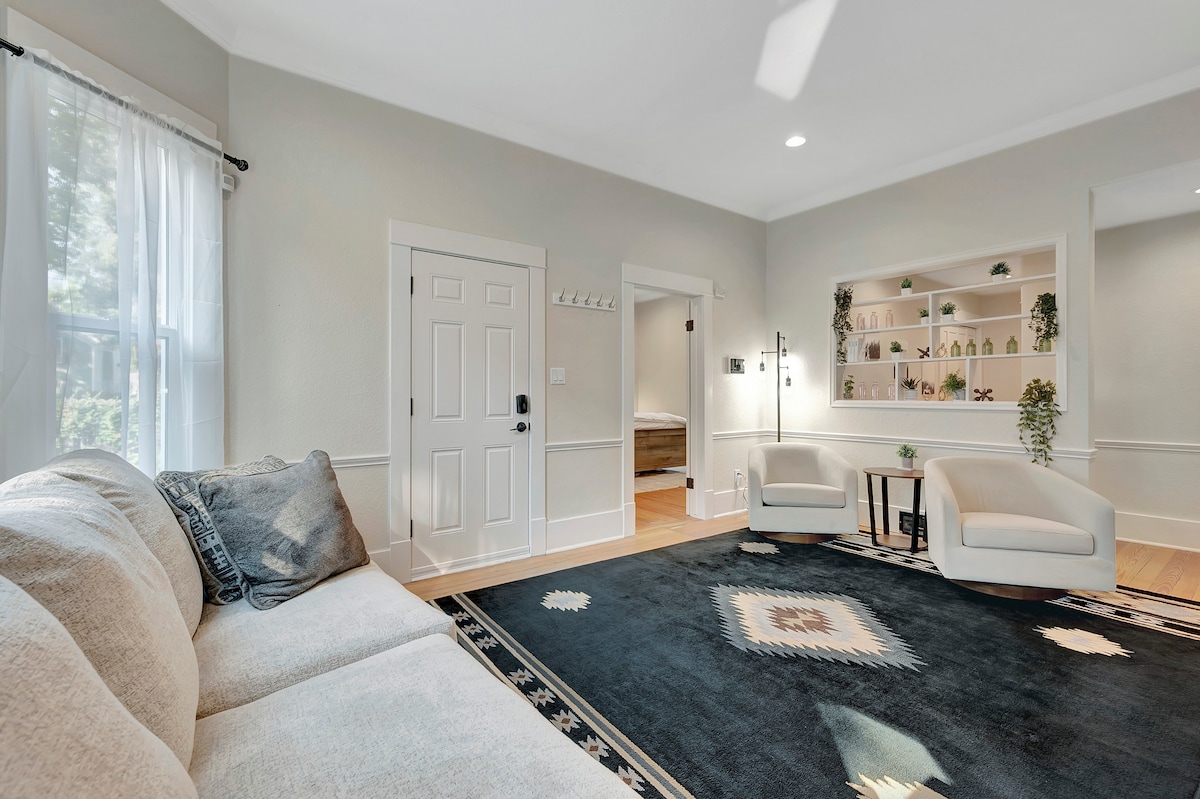 Quítate los zapatos en este nuevo loft tipo estudio en el tranquilo e histórico barrio de West Side. O ponte los zapatos y disfruta paseando por restaurantes locales, cervecerías, destilerías, tiendas, parques, senderos o el Centro de Eventos y Bodas St Vrain. En invierno, puedes echar un vistazo a la cordillera Flatiron de Boulder desde la ventana. En verano, mirarás hacia la vegetación de las copas de los árboles. Dos huéspedes como máximo. Lo sentimos, no se admiten niños de 1 a 12 años.