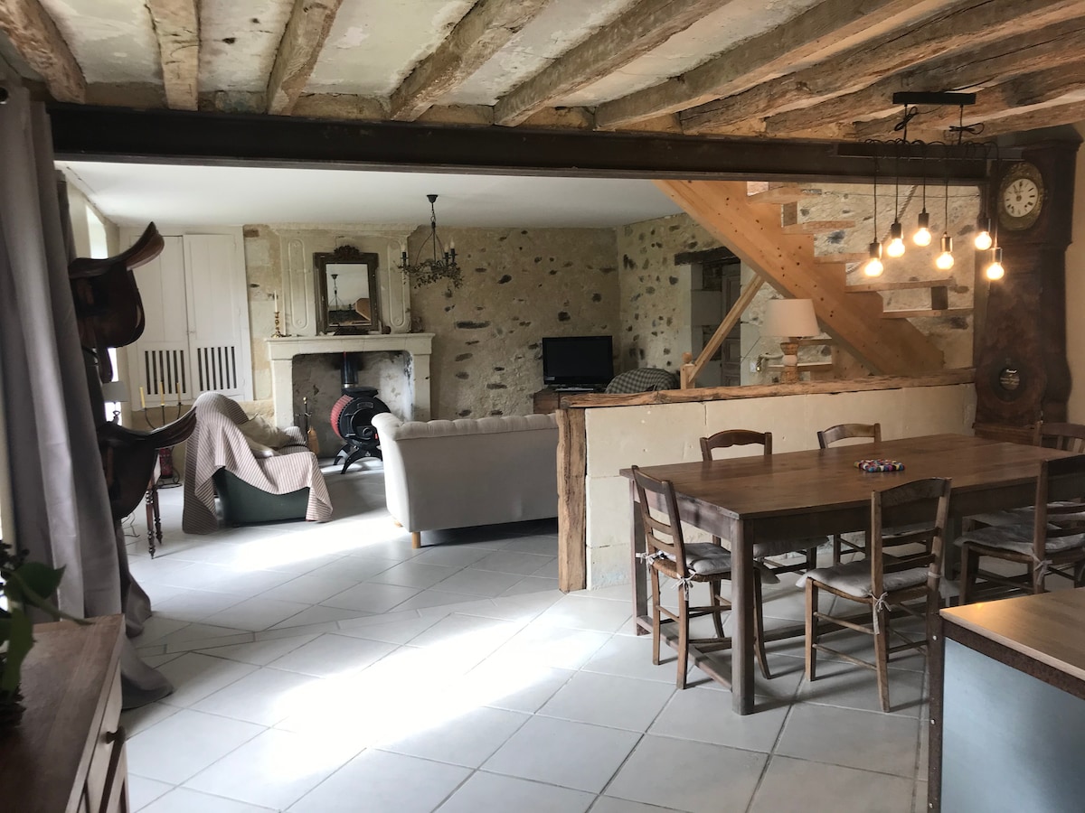 Esta casa de campo se encuentra a las puertas de Anjou. Viticultores y pueblo a cinco minutos. Podrá disfrutar del Puy-du-Fou a 55 minutos, el Futuroscope está a 1h20, los primeros castillos del Loira están a 30 minutos, el parque biológico de Doué en Anjou a 20 minutos, karting a siete minutos, parque del valle a 10 minutos, piragüismo, ciclismo, rutas de senderismo... Podrá recoger los huevos en el gallinero y alimentar a las gallinas. ¡Nuestros caballos están cerca de la casa. Se admiten animales si están bien educados!
