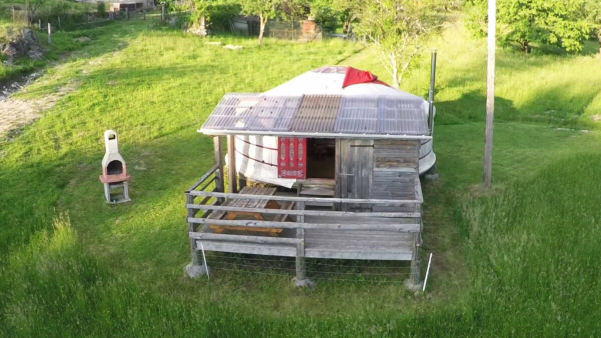 Surplombant nos parcelles aromatiques et médicinales, et proche de notre serre de tomates de variétés anciennes, cette yourte vise à vous apporter une expérience de pleine nature et de reconnexion. Fabriquée avec des matériaux sains, elle est simplement équipée de toilettes sèches, d'un panneau solaire et d'un tout petit point d'eau. La vue sur la vallée et sur les étoiles est inspirante et ressourçante. Départs en randonnée possibles depuis la yourte. Vente de produits à la ferme.