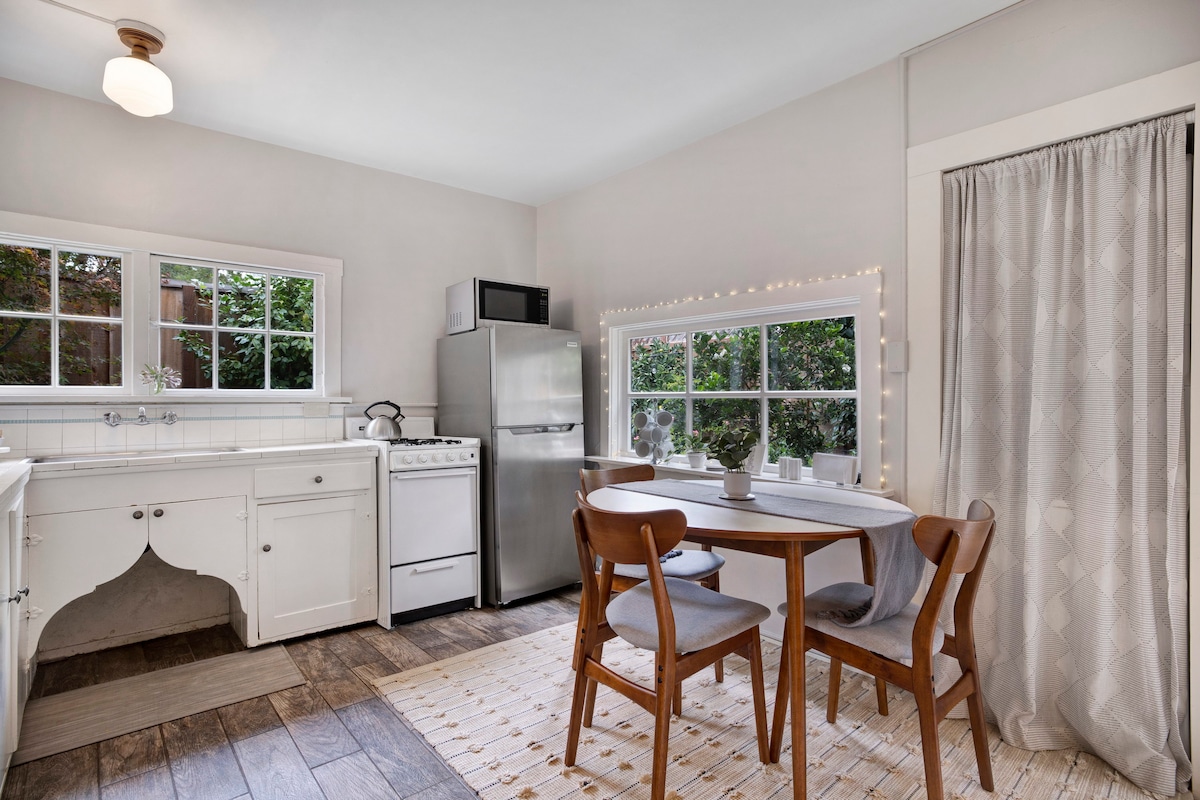 Welcome to Chiquita Cottage. Our 400 sq. ft. detached studio was fully renovated in summer 2018. Located behind our primary family residence, it provides comfort and privacy to travelers. A brand new kitchen, queen sized bed, free wifi, and Smart TV will help make your stay easy. We are walking distance from downtown Mountain View and perfectly situated for Light Rail, Cal Train, and major highway access.