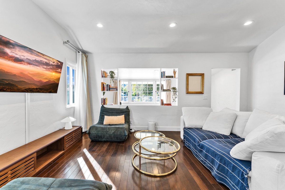 Enjoy our Elevated Wellness home with Sauna 15 mins from everywhere in LA. This home is a place to find balance. Whether you're relaxing in the neutral tones of our living room or lush outdoors, away from busy and chaotic main streets. Enjoy morning coffee and croissants and the hipster coffee joint, Highly Likely, a few minutes away, and the best Sichuan meal you’ve ever had at Mian. Fast WiFi, New kitchen appliances, washer dryer, front patio, backyard and more.