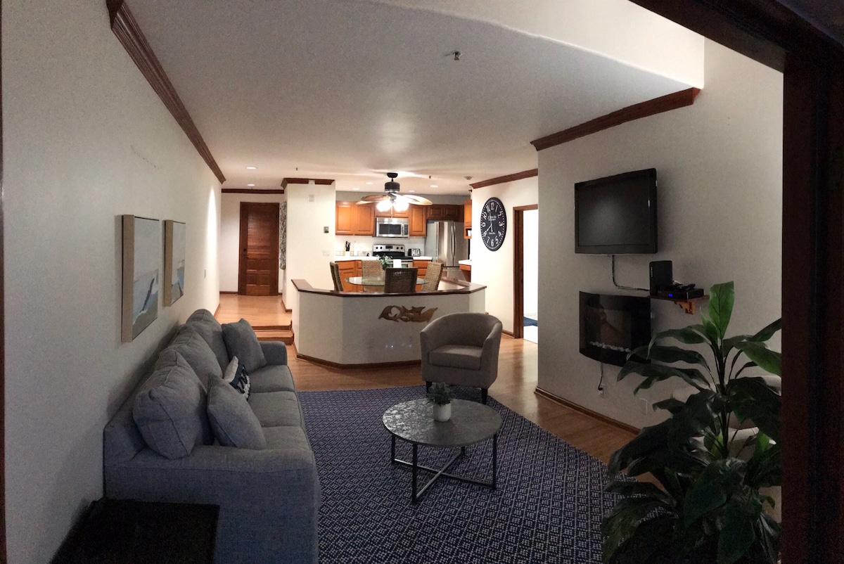 ** ¡Pregúntanos sobre el registro anticipado! ** Bienvenido a Haven, el popular apartamento prémium de Hamilton Cove con impresionantes vistas al mar sin obstáculos. Nuestro apartamento de la esquina superior tiene ventanas adicionales y un balcón de 35 pies. ¡A solo 21 escalones de la cima! ¡Electrodomésticos nuevos, televisores de 65" y 55", wifi de clase empresarial, chimenea, techos abovedados, carrito de golf y lavandería! No hay vecinos encima de BD+LR. Disfruta de la piscina, spa, gimnasio, saunas, playa, minigolf, canchas de tenis, parque infantil y voleibol de playa. Máximo 4 personas a menos que 1 huésped sea menor de 1 año.