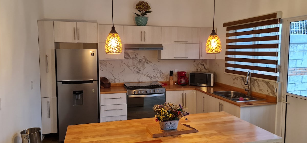 El mejor lugar para quedarte en el pueblo mágico de Bernal es nuestro hermoso departamento de dos recámaras. Cuenta con un diseño minimalista que mezcla los materiales y la flora caracteristicos de la región para lograr un ambiente agradable que siempre estará enmarcado por la Peña de Bernal, ya que fue orientado para tener las mejores vistas del monolito. Nos encontramos en el centro de la ciudad, es perfecto para moverse caminando. Contamos con vigilancia a todo momento y la mejor terraza.