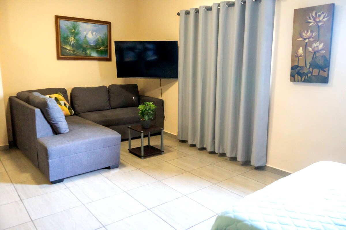 Es un espacio diseñado exclusivamente para hospedaje Airbnb, no es parte de una casa, por lo que el confort, privacidad y seguridad es uno de los atractivos de éste lugar, está ubicada en una zona residencial muy tranquila y segura, cerca de todo, plazas comerciales, etc...está decorada con muebles de buena calidad, principalmente cedro, cuenta con una cama matrimonial, SmartTV, minisplit, plancha, clóset, ventilador de techo, frigobar, con WiFi de 150 Megas, escritorio, baño privado, etc.