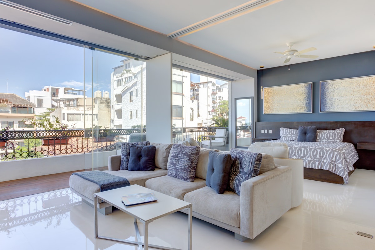 Departamento ubicado en el corazón de la Zona Romántica, a tres minutos caminando al muelle de la Playa de los Muertos y a la zona de restaurantes y bares de Olas Altas. Cuenta con: cocineta, habitación principal con cama King Size, tv y sofá cama, Apple TV, sala amueblada con cama sencilla y vista al mar, Wifi y aire acondicionado en ambos ambientes, terraza con comedor y piscina en área común. Estacionamiento propio.