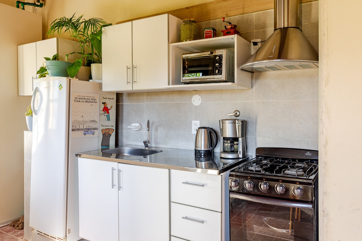 Relájate en este alojamiento único y tranquilo en una finca de Uspallata. Ideal para descansar, vas a disfrutar de un entorno exclusivo entre bosques y cultivos frente a la Cordillera, ubicado a solo 3 km del centro de Uspallata. El interior de la casa está completamente remodelado, cuenta con todos los servicios, cocina amplia y completamente equipada. Todos los ambientes son confortables y luminosos. Además podrás disponer de leña para la estufa interior y el fogonero exterior. Wifi Starlink.