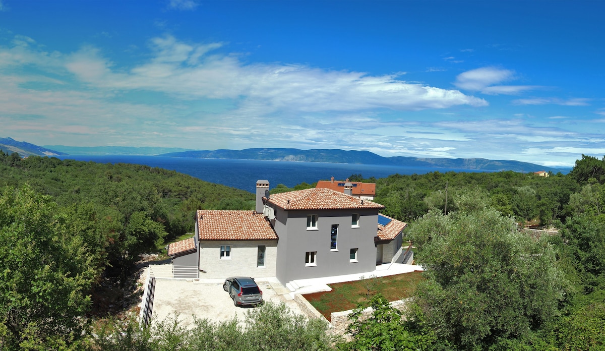 Esta villa está rodeada de vegetación y ofrece una vista impresionante del mar Adriático. La piscina de 50 m² está llena de agua salada. En la planta baja tiene una cocina totalmente equipada, sala de estar y dos dormitorios con baños. La sala de estar conduce a una hermosa terraza. También hay una cocina de verano y una zona de barbacoa. En el primer piso hay un dormitorio con baño, una sauna y un vestidor. También tiene una galería con máquinas de ejercicio y futbolín. La villa ofrece dos plazas de garaje.