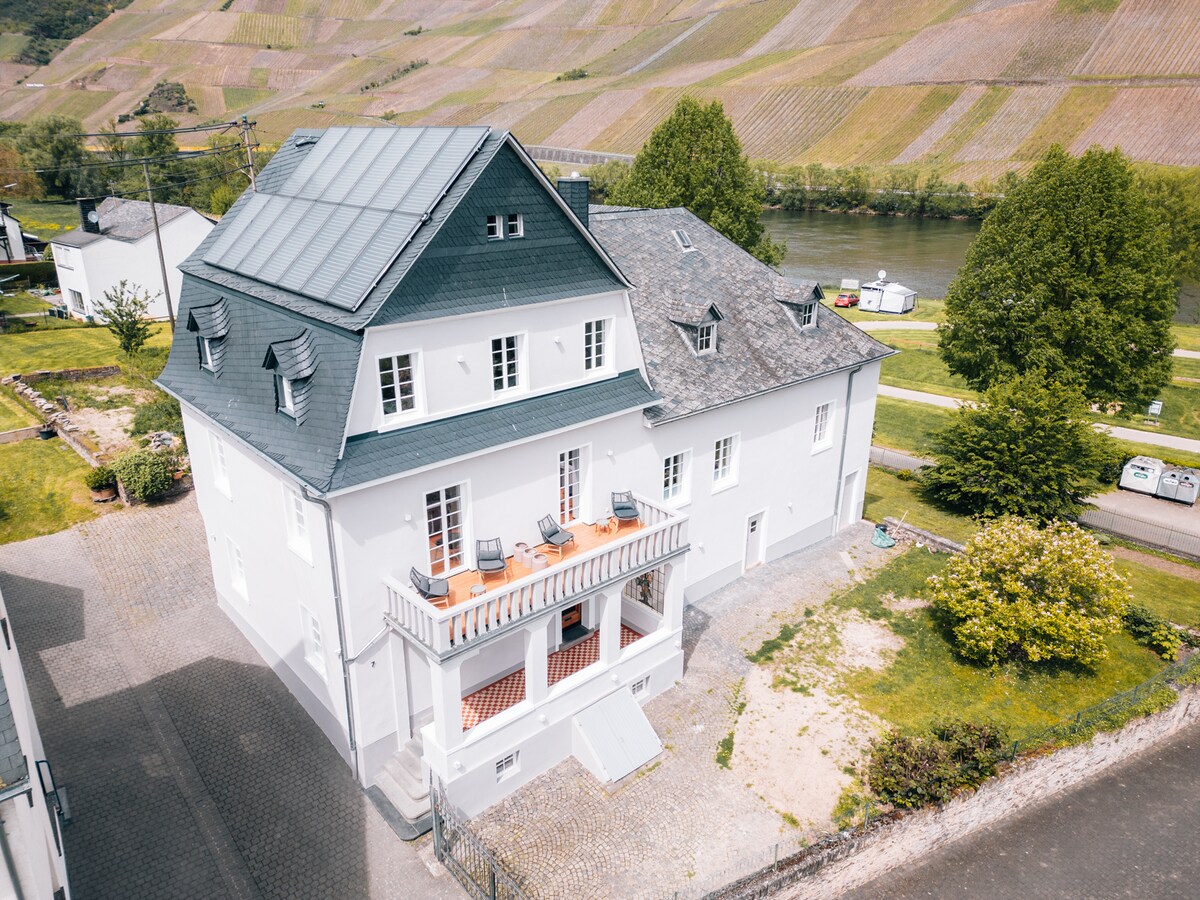 Das über 100 Jahre alte traditionsreiche Winzerhaus steht auf einem grossen Grundstück mit zahlreichen alten Obstbäumen an der Mosel. Vom Garten, vielen Zimmern und den Balkonen bietet sich ein freier Blick über das glitzernde Flussband und die berühmten Steilhänge. Jedes unserer zauberhaften 4 Boutique Appartements verbindet handverlesenes Mobiliar mit ausgewählten Schätzen der Vergangenheit. Sanfte Farben und natürliche Materialien spiegeln den naturverbundenen Esprit des Ortes wider.