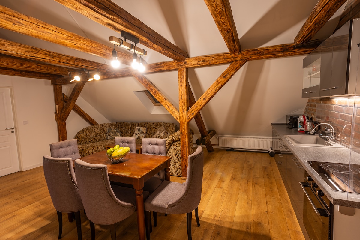 Nuestro departamento es ideal para 2 personas, también es adecuado para 4 personas. Está totalmente equipado. Todavía hay algo para ti en la nevera :-) Hay una cama doble en el dormitorio y una cama doble adicional (sofá cama) en la cocina. Está en el tercer piso en una casa de estilo artístico muy agradable.