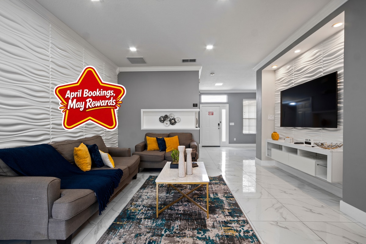 ¡✨ Experimenta Orlando con estilo! Este refugio de 4 dormitorios y 3.100 pies cuadrados está a solo 10 minutos de Disney. Disfruta de tu propia piscina privada, jacuzzi y sol todo el día en una comunidad tranquila y de lujo. La sala de estar abierta y luminosa, la cocina del chef y la relajación inspirada en el spa hacen que sea la escapada perfecta después de los parques. Se admiten mascotas sin cargos adicionales. Cerca de tiendas, restaurantes y atracciones: ¡reserva tu escapada de lujo hoy mismo!