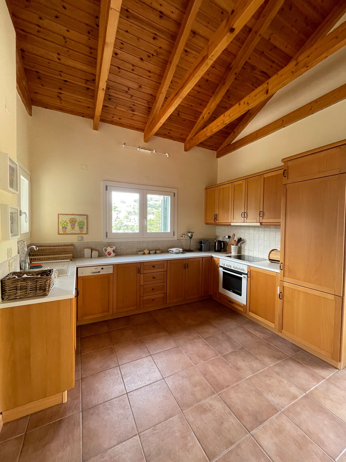 Relájate en una terraza en la ladera de una colina con vistas al mar mientras la refrescante brisa marina fluye durante todo el día. Por la noche, el aire lleva el aroma del jazmín y la madreselva. El ambiente sereno continúa en el interior con plantas en macetas, elegantes muebles empotrados y una decoración de buen gusto en tonos tierra apagados. La iluminación y otros detalles completan la serenidad. La casa tiene un ambiente relajado y espacioso, que combina arquitectura moderna con elementos tradicionales. Podrás disfrutar de materiales de alta calidad, techos altos, luz divertida y lino fino. Hay un altavoz bluetooth disponible para disfrutar de tu música favorita desde tu ordenador. Los dormitorios tienen baño privado. Se proporciona una cocina totalmente equipada con lavavajillas y cafetera espresso. Hay una barbacoa de piedra disponible. Para los meses más fríos, hay una estufa de pellets junto con mantas eléctricas que dan una sensación cálida. Tienes acceso a nuestro propio huerto, según la temporada, por supuesto. Estoy disponible en todo momento para cualquier ayuda que necesites. Aunque la isla de Ithaki es pequeña, tiene muchos tesoros escondidos. Será un placer ayudarte a explorarlos. Cualquier servicio relacionado con las vacaciones, como alquileres o reservas, se puede reservar bajo petición. La isla de Ithaki es un lugar bastante íntimo con muchos tesoros por descubrir. La casa se encuentra en el pueblo de Ag. Saranta, un asentamiento tradicional en la parte norte, con vistas a la bahía de Afales. La playa cercana con aguas increíbles está a 5 minutos en coche. El pueblo de Stavros, con todos los servicios, y el pueblo pesquero de Frikes están a 1,5 kilómetros. Por desgracia, no hay transporte público en Ítaca. Es muy recomendable alquilar un coche. El acceso a Ithaki es a través de Cefalonia, Patras, Astakos y en los meses de verano desde Lefkas también.