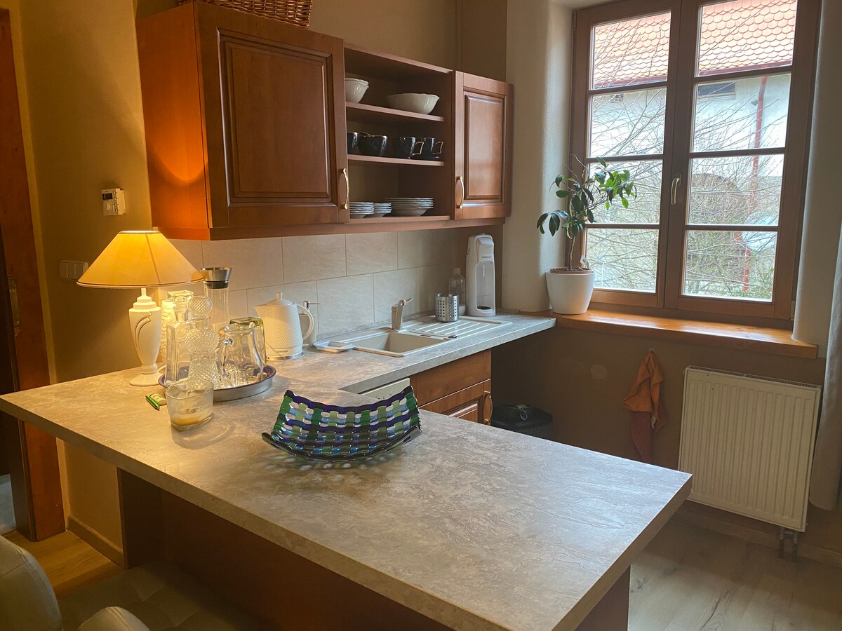 Disfrute de una noche bajo bóvedas barrocas. El estudio de hasta cinco camas ofrece un baño privado, una cocina totalmente equipada con lavavajillas, lavadora y cafetera de cápsulas. ¡La historia complementada con sensibilidad por el diseño contemporáneo! El alojamiento se encuentra en el edificio de la antigua administración forestal de la finca n.º 2, que está registrado como monumento cultural como parte del recinto del castillo.