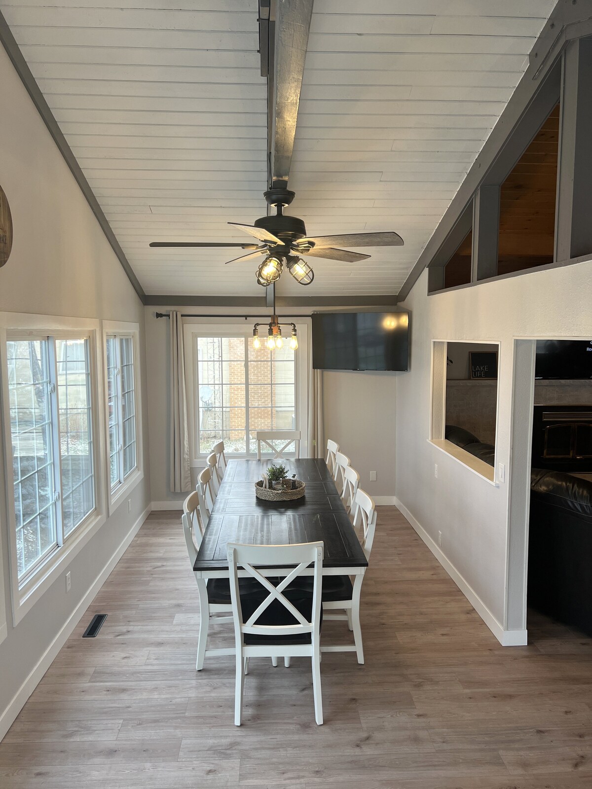 Fun for the whole family at this stylish lakeside home in the heart of Beaver Dam. The house as everything a group needs and wants for the perfect weekend, week, or overnight adventure. From the open floor plan living room to the exposed game room basement that leads right out to the lakeside yard. We've filled this home with all the touches needed to guarantee lake life living. The backyard overlooks thousands of acres of lake with endless lake views.