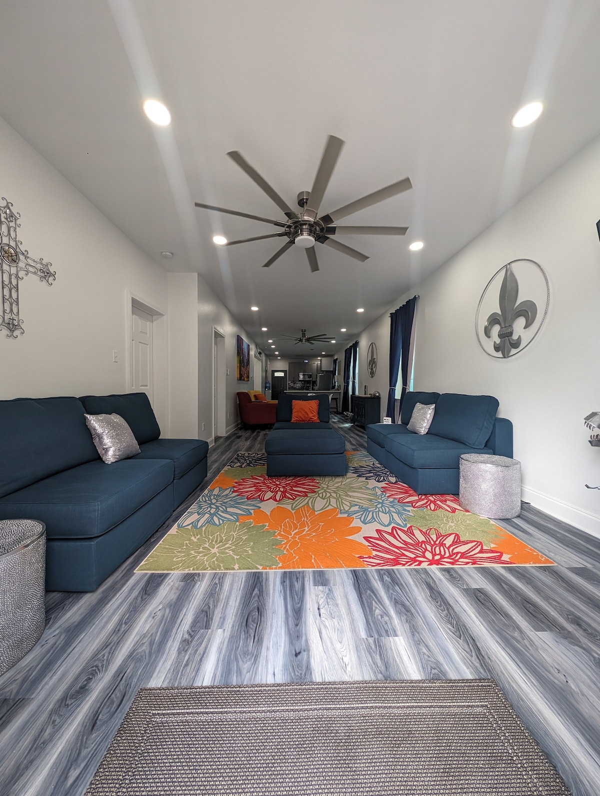 ¡Recién reformado, limpio y luminoso, con un baño completo para cada dormitorio! Disfruta del gran patio trasero con sistema de luz automática por la noche para relajarte. Estación de trabajo con triple monitor, teclado y ratón por si necesitas trabajar mientras estás fuera de casa. Solo tienes que traer tu ordenador portátil y tu hub. ¡TV 4K de 65 pulgadas para ponerte al día con Netflix y una Super Nintendo! Aparcamiento en la calle. Cocina totalmente equipada y zona de café para empezar bien el día. Propietario atento que requiere que los huéspedes disfruten de su tiempo en Nueva Orleans :)