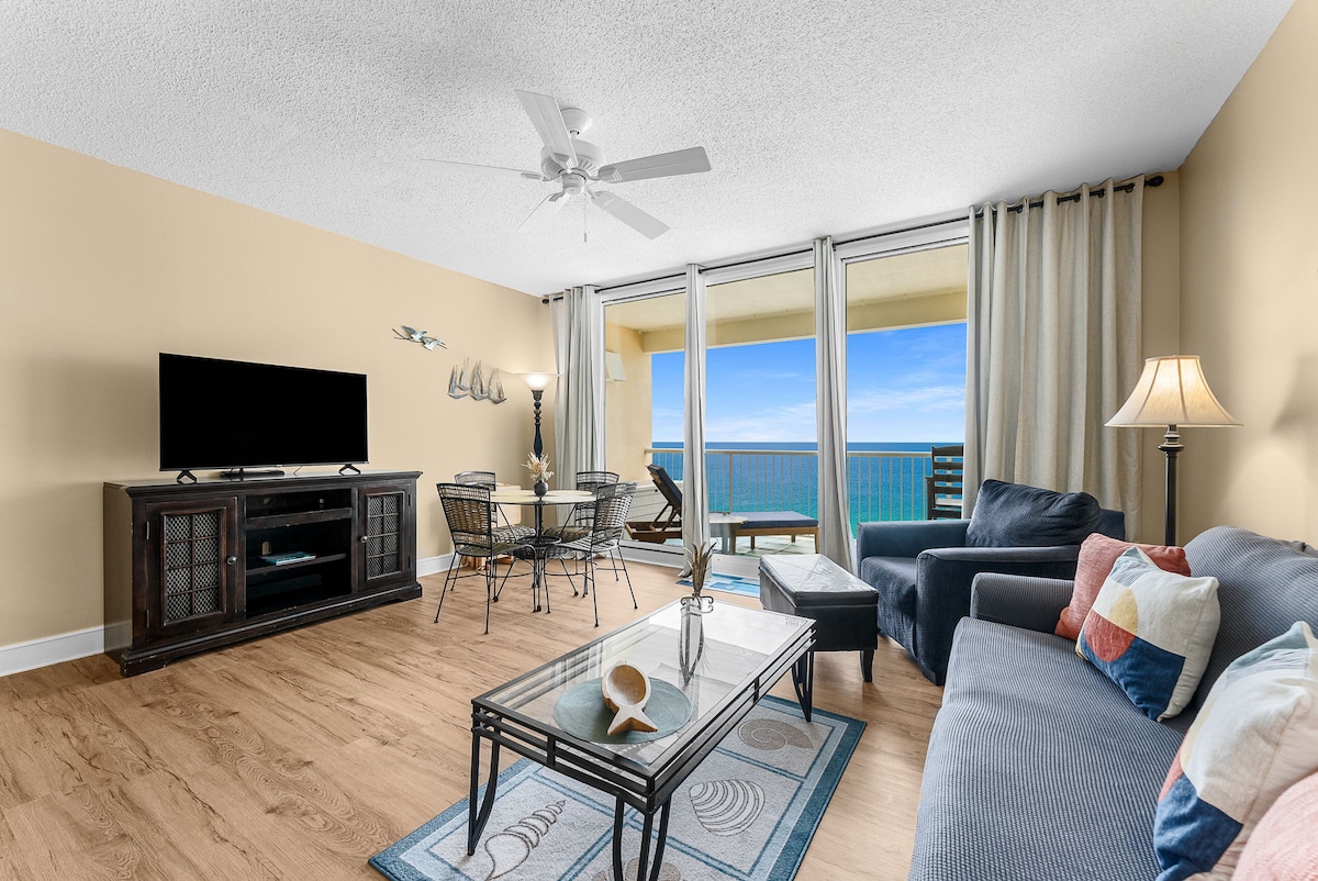 **Recién renovado** en diciembre de 2018. Este condominio de playa es espacioso 3/2. La terraza está orientada al oeste con impresionantes vistas al atardecer desde el piso 10. Cabaña Tiki con servicios de alimentos y bebidas, gimnasio completo, jacuzzi, dos piscinas (una climatizada) - 3 dormitorios / 2 baños completos - capacidad para 10 personas cómodamente. * Dormitorio #1 - Front Master del Golfo - Cama tamaño king con baño privado y acceso al balcón. * Dormitorio2 - Dos camas dobles * Dormitorio 3 - Cama tamaño queen * Sala de estar - sofá cama tamaño queen