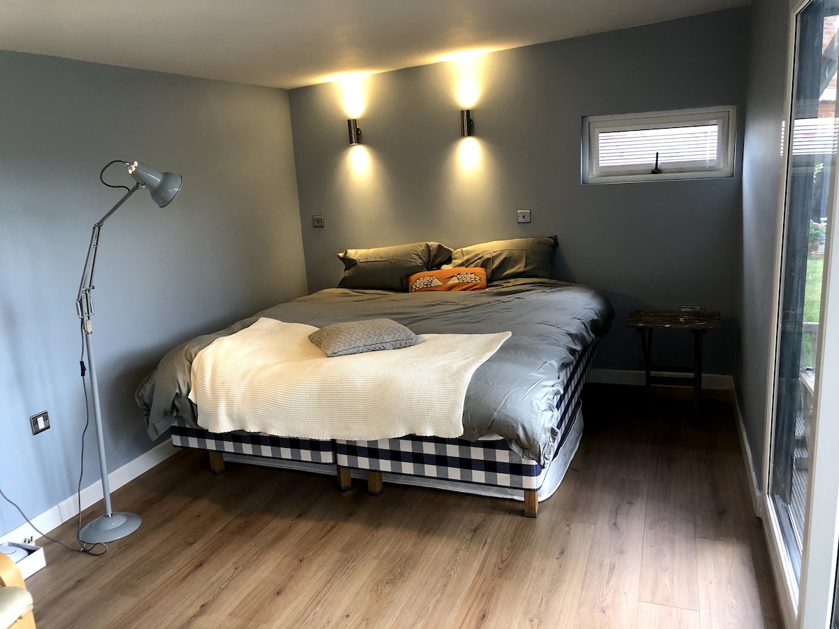 Este hermoso anexo es una nueva adición a nuestro hogar y nos ha proporcionado un espacio increíble dentro de nuestro jardín. El anexo tiene una sala de estar de planta abierta con cocina y barra de desayuno en un extremo. El dormitorio tiene una cama extragrande que se puede configurar como una habitación doble si es necesario y hay un baño separado con ducha doble. Este es un espacio ideal para viajes de negocios con su propio acceso, wifi, puntos USB y la capacidad de auto abastecerse si lo desea, pero igualmente una gran escapada de fin de semana.