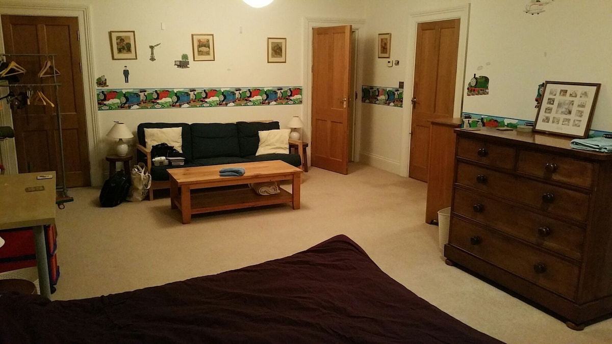 Este estudio es inmaculado, tranquilo y pacífico. Ha sido renovado en los últimos dos años. Es un espacio privado dentro de nuestra casa con su propia entrada, baño e instalaciones para bebidas y microondas. Está en una carretera principal, pero hay doble acristalamiento, persianas y cortinas opacas. Si esta habitación no está disponible, echa un vistazo a nuestra otra habitación. https://abnb.me/eXWs9su1G4