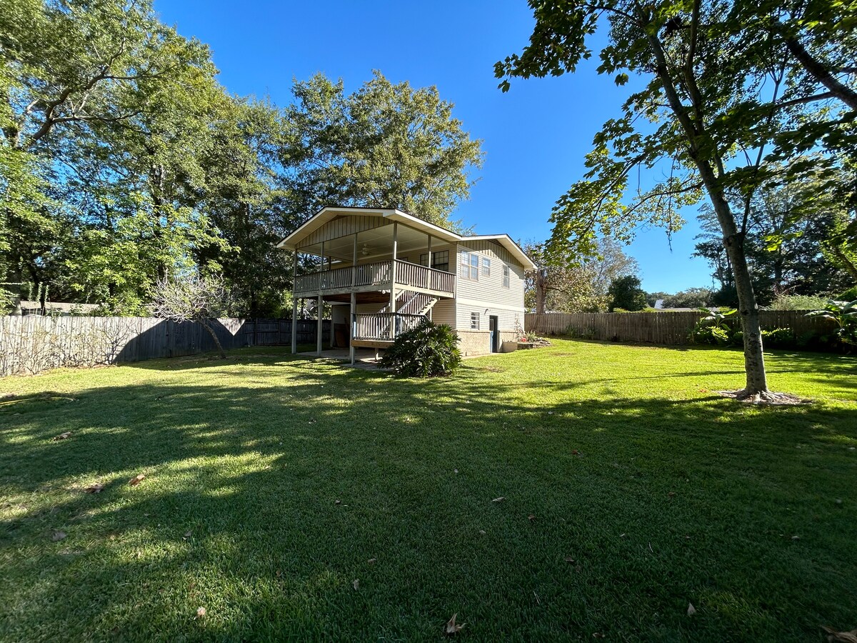 Cute 3 bedroom 2 bathroom house on 1 acre with fenced back yard, large oak trees, gazebo, large deck, charcoal grill, and front porch. Home features one large master bedroom and bathroom with walk in closet, shower and Jacuzzi tub. The other side of the house has 2 bedrooms, a desk/work area, and a full bathroom. In the middle of the house is a large open living room, dining room, and kitchen. Pet friendly (no cats) for a $50 pet fee. Walking distance from disc golf course & ice cream shop.