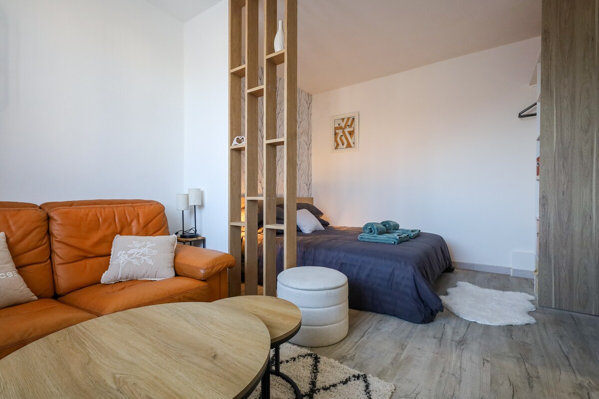 Apartamento amueblado compuesto por un dormitorio (con baño y 2 camas) (más sofá cama a pedido con un suplemento de 10 € por semana) y una cocina-sala de estar totalmente equipada. Con su acceso individual, este lugar cálido rodeado de vegetación le ofrecerá comodidad e intimidad. Lugar de aparcamiento reservado a 10 metros de la entrada. El apartamento es la planta baja de mi casa, soy discreta, pero estoy disponible si me necesitas ;)